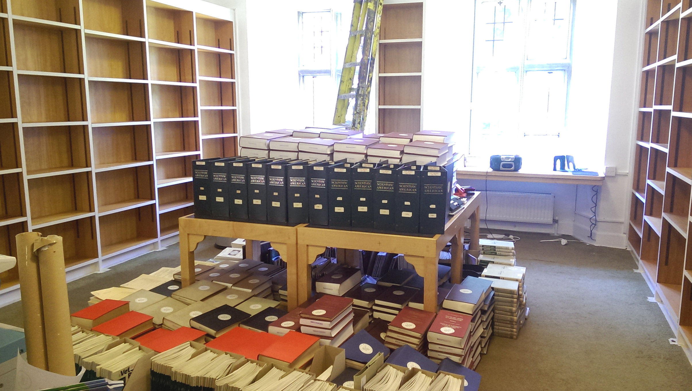 Now that the paint has dried, we are starting to get the books back onto the shelves, but we are taking the opportunity to reorganise the journals and reference books a bit, to make things easier to find. The reference sequence now starts on the shelves to the left as you enter the Benson Room with class R.A (encyclopedias), and the other reference classes now follow in alphabetical order around the room, with journals at the end in R.J (which continues into the Middle Room). We will be updating the library plans to reflect the changes, but please ask a member of staff if you are unsure where to find a book!