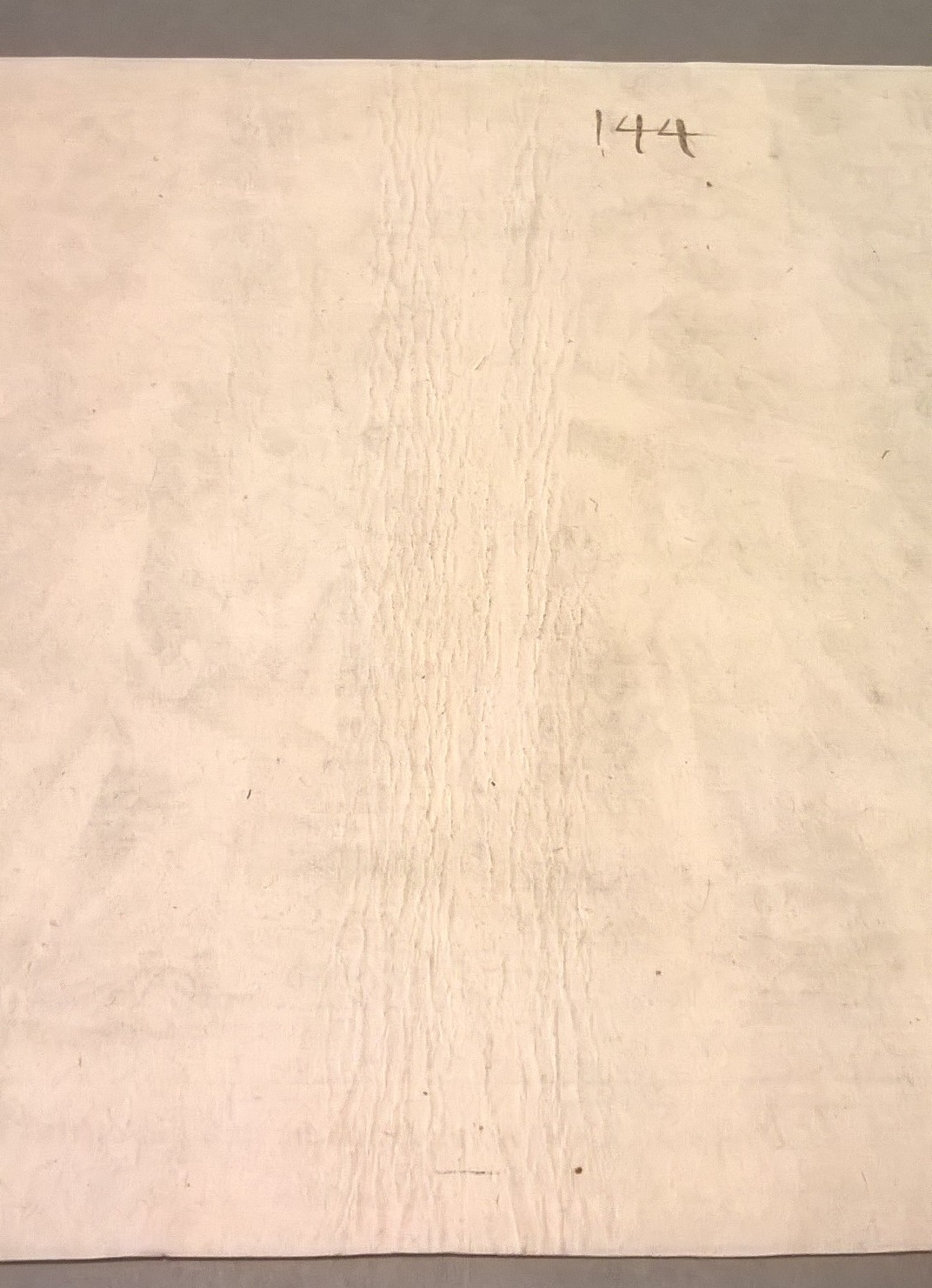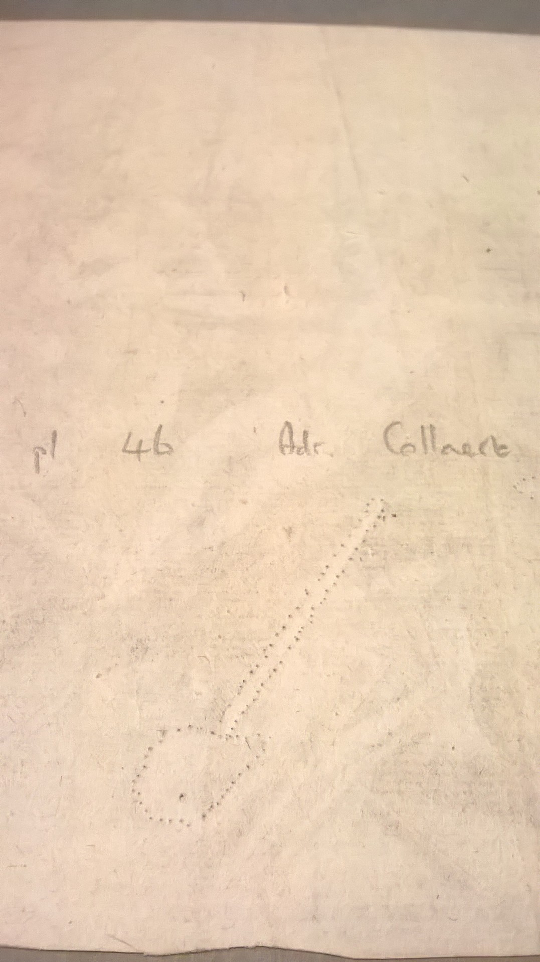 Many of the prints also have watermarks – symbols created in the mesh using pieces of wire, which papermakers used as their ‘logos’ (Fig. 3). Once the new sheet was removed from the mould it was placed between felts and pressed to remove excess water before being hung over ropes in a loft to dry further. Many of the prints show indentations in the paper left by the rope on which it was dried (Fig. 4).