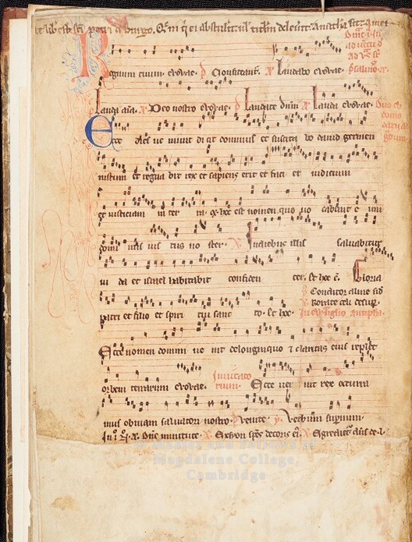 Thanks to the digitisation team at the Digital Image Archive of Medieval Music (DIAMM), the Peterborough Antiphoner is now available to view and study online, and it is the first manuscript from the Old Library to be digitised. Prof. David Hiley from the University of Regensburg says that the digitisation of this manuscript ‘makes accessible one of the most important English chant sources of the thirteenth century…. the Peterborough Antiphoner is one of the richest sources of chants peculiar to English sources or even unique to one [monastic] house. Sincere thanks to Magdalene College and DIAMM for bringing this invaluable manuscript onto our screens’.
